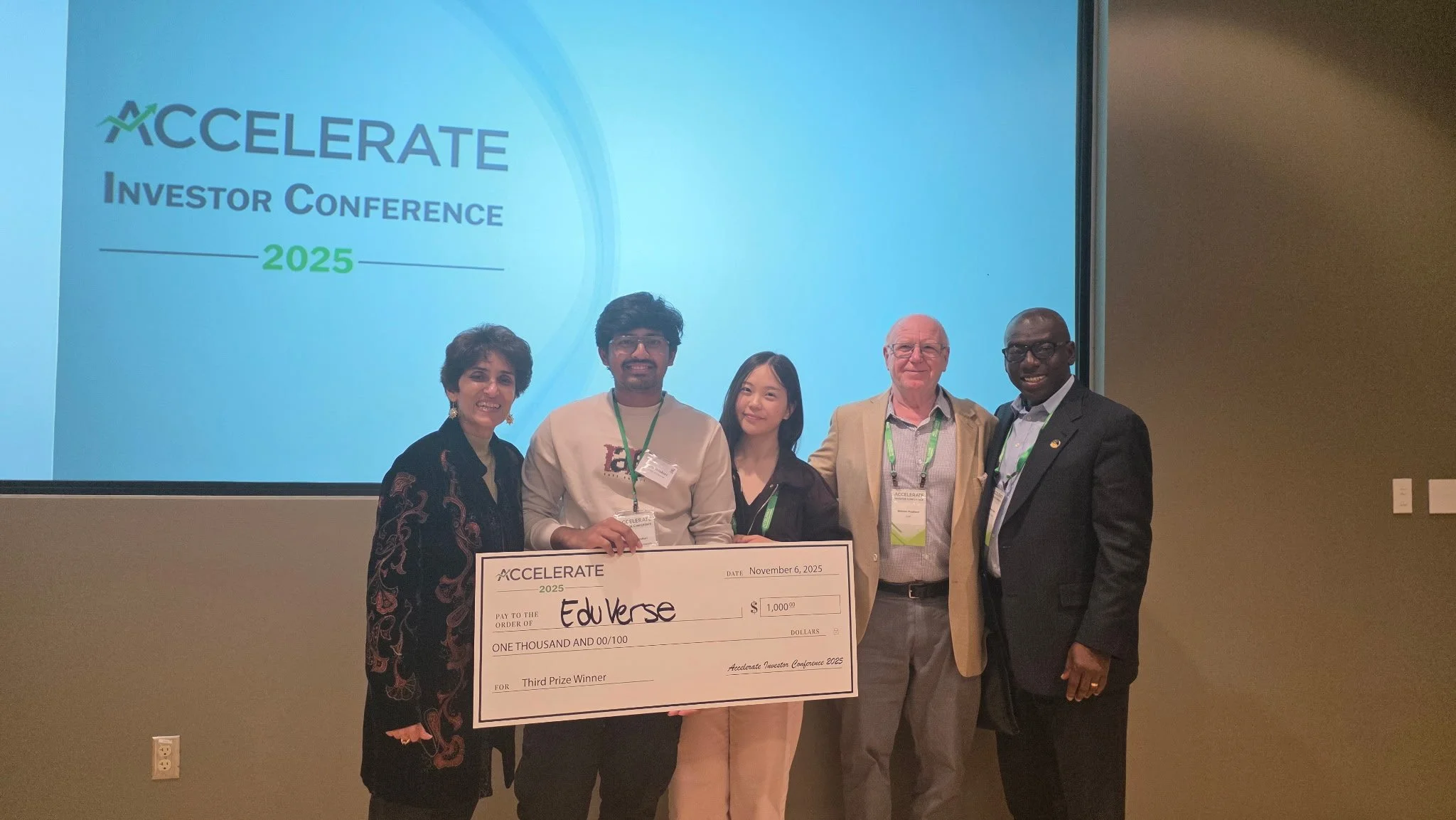This November, the Accelerate Investor Conference brought together investors, founders, and innovators at George Mason University’s Arlington campus. Over two days, the event featured 50 hand-picked startups and more than 20 student teams competing for recognition and cash prizes. The student track was especially vibrant, with four teams from the MIX Incubator and MIX Student Innovators Launchpad programs stepping onto the stage to present their ventures.