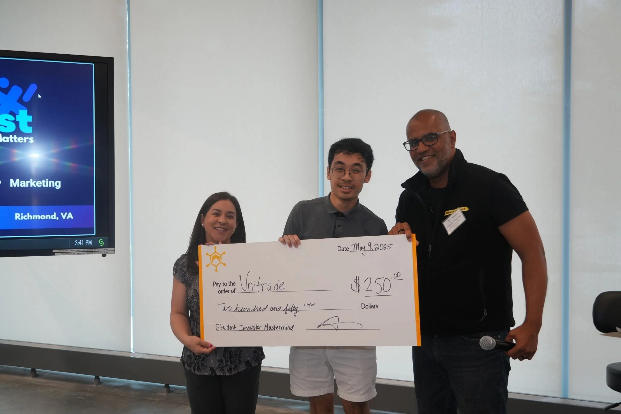 Best Pitch went to Jagan Yetukuri for EduVerse, an AI-powered education platform. His clear, compelling pitch impressed the judges and earned him the $500 prize presented by Next powered by Shulman Rogers, with Anthony Millin, Co-Chair, personally awarding the check.