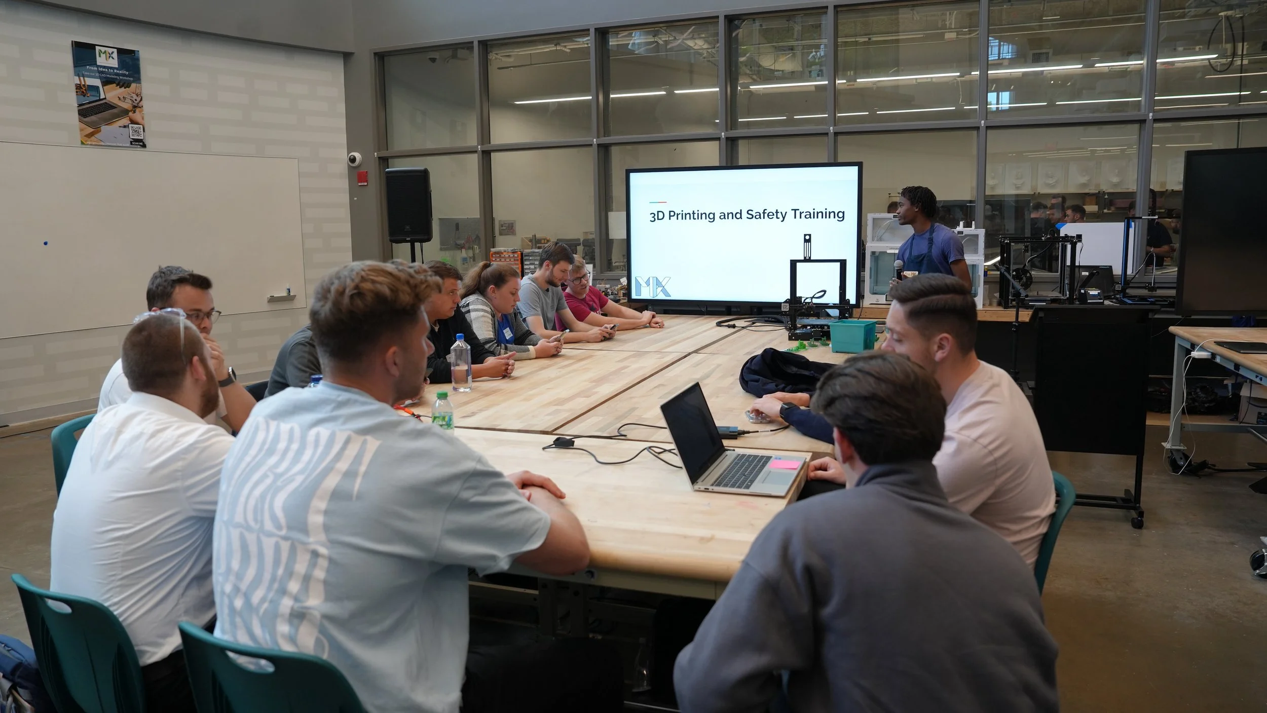 MIX Student Staff Associate, Dre Miller, leads a 3D printing workshop and demonstration.