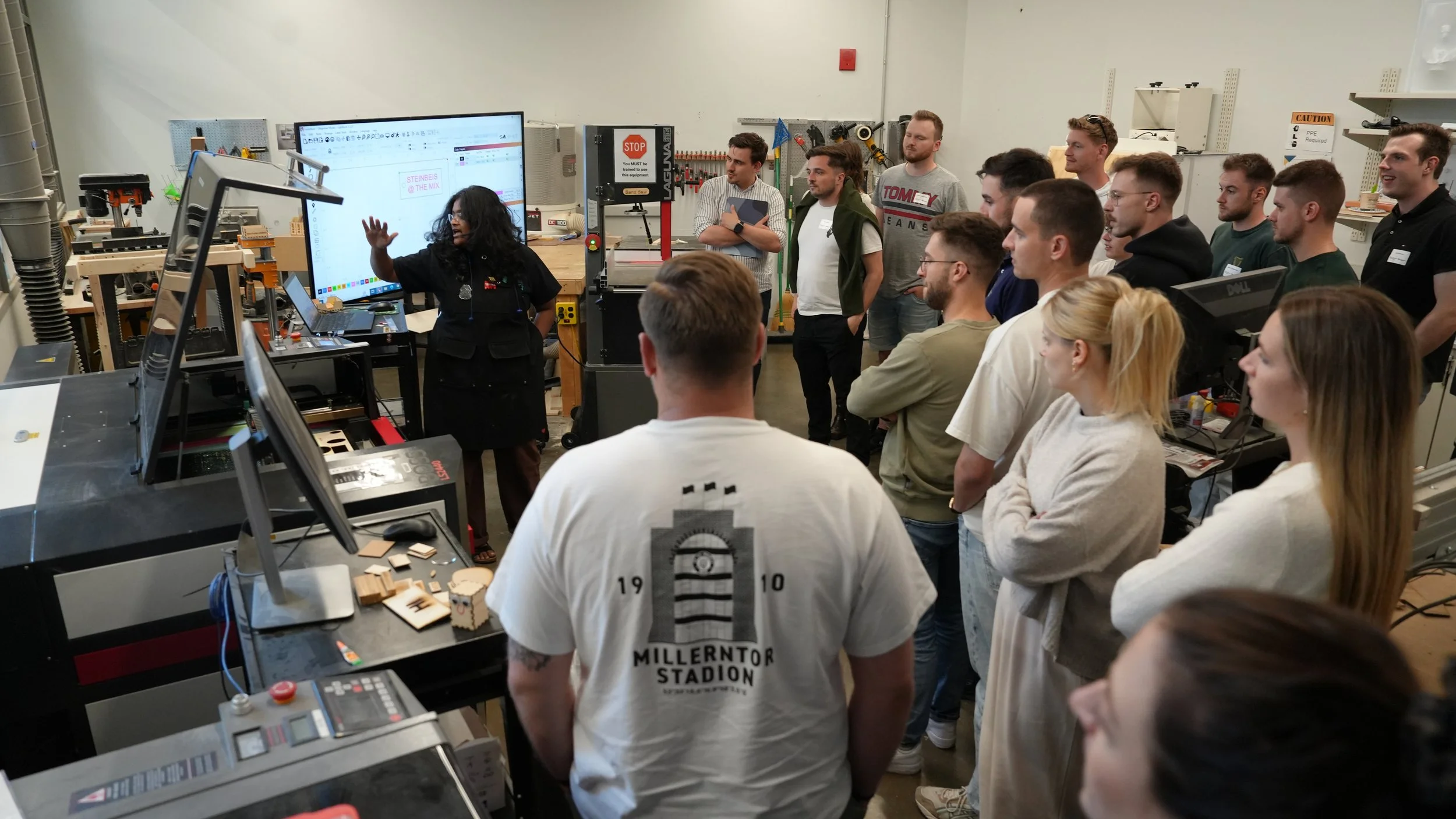 MIX Student Staff Associate, Celina Domathoti, leads a laser cutting workshop.