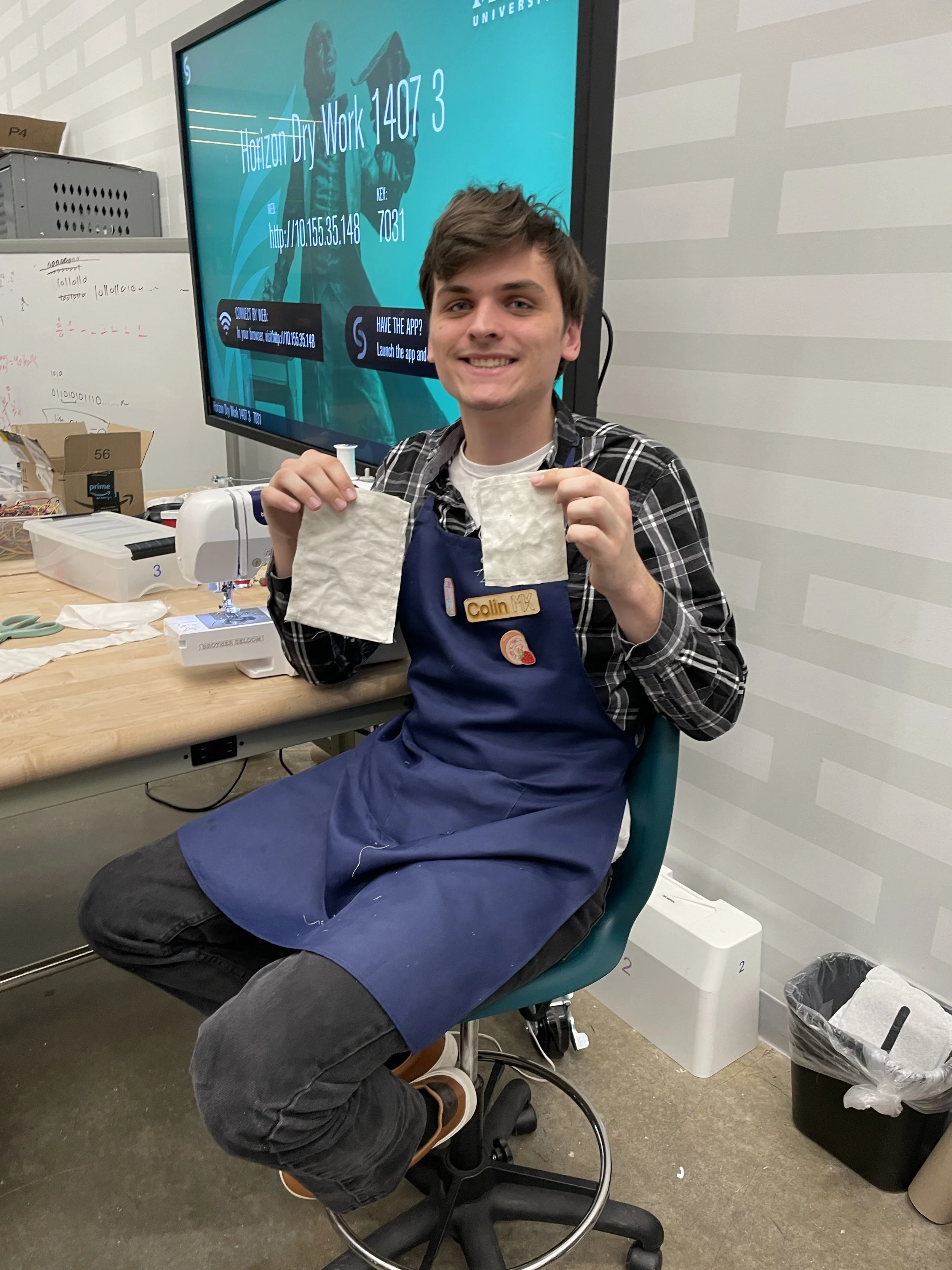 The MIX Sewing and Textiles Station is located in the main Makerspace. Within this station exists smaller individual tables for embroidery, vinyl cutting, heat press, sublimation printing, and ironing. The sewing and textiles cabinets contains tools and scrap fabric for user.